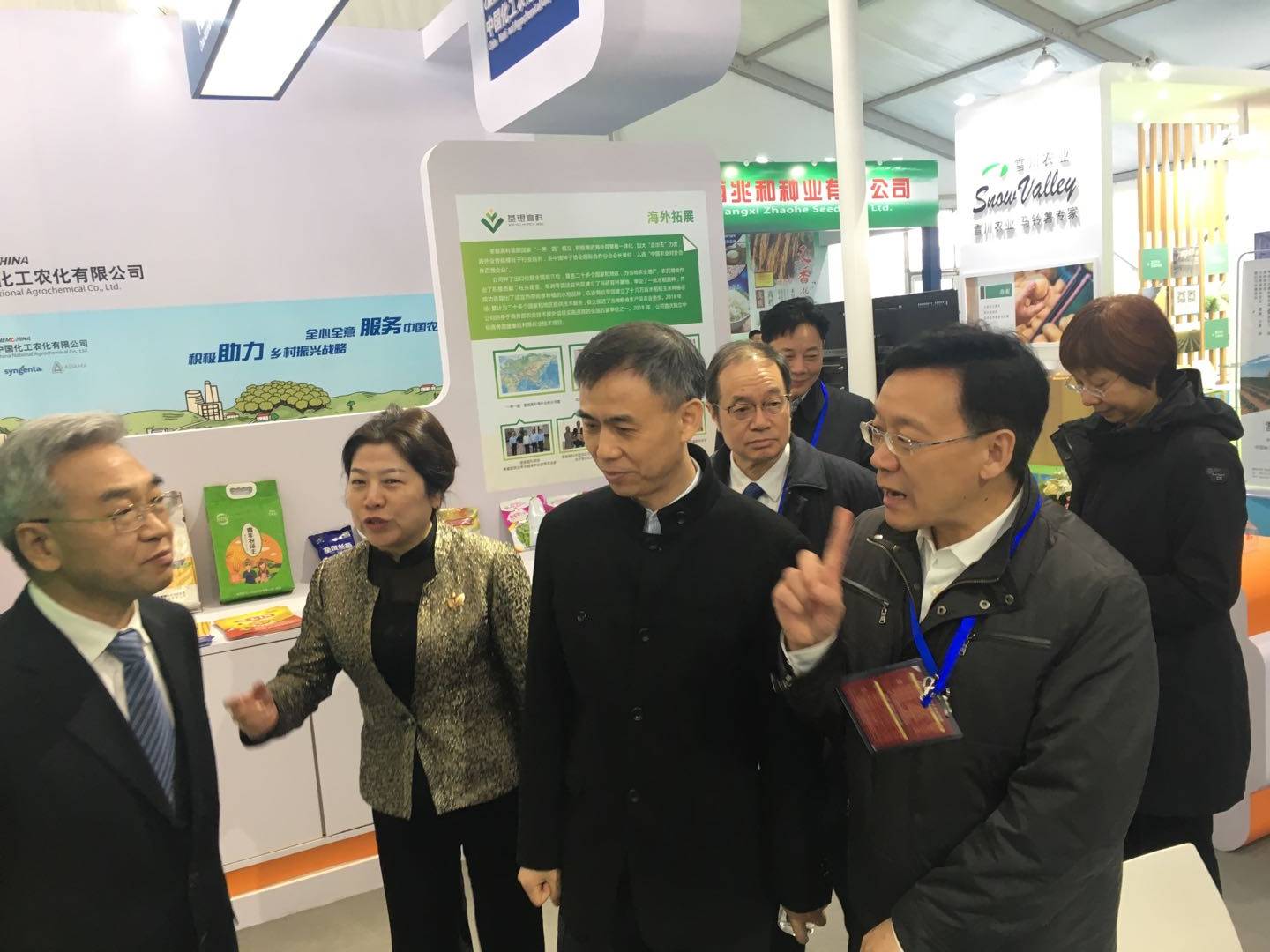 ??? 中化農業總裁、荃銀高科董事長覃衡德先生,“中國種業十大功勛人物”、公司創始人張海銀先生等領導、專家蒞臨荃銀高科展廳巡展。