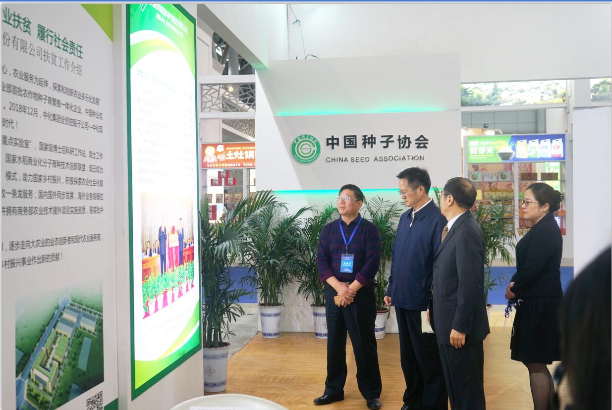 ??? 開幕式后,民政部詹成付副部長參觀了中國種子協(xié)會扶貧展廳,并在荃銀高科展板前駐足觀看,聽取荃銀高科開展扶貧工作匯報,并給予高度評價,中國種子協(xié)會鄧光聯(lián)副會長陪同巡展。